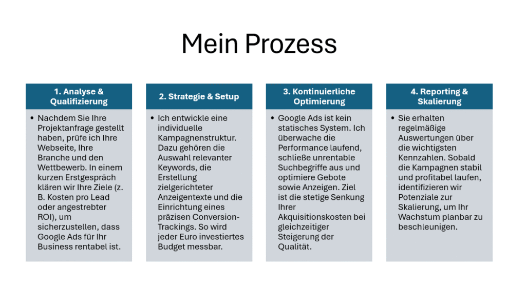 Erfolgreiche Google Ads Kampagnen benötigen eine klare Strategie, sauberes Tracking und kontinuierliche Optimierung.